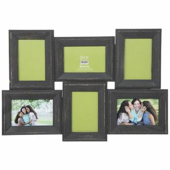 Show off photos with a whole lot of rustic charm using this Barnwood Collage Wall Frame! This collage of photo frames has a solid color with a weathered finish. Each frame has an MDF back and a protective glass. Plus, the openings are staggered between vertical and horizontal. Show this off on your wall for a way to remember your friends and family fondly!