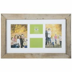 Keep it simple and rustic, even while displaying your favorite memories! Barnwood Collage Wall Frame has a rough-hewn barnwood frame with a protective glass and a white mat. Open up the MDF photo back to reveal four openings you can display photos from! Show off all the members of your family and fill your walls with smiles with this beautiful frame.