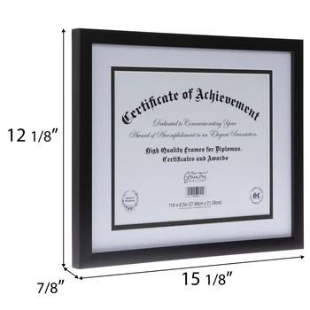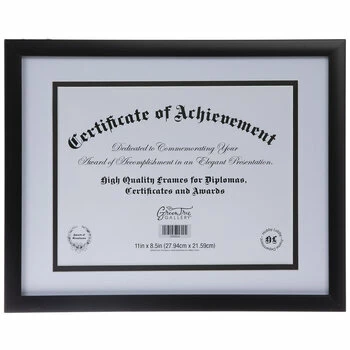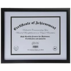 Commemorate your certificate, award, or diploma with an elegant presentation using Black Flat Document Frame! This plastic frame boasts a flat, glossy black surface, a clear glass screen, a layered white mat with a black fillet, and an MDF photo back. Fill out your room or office with a professional addition!