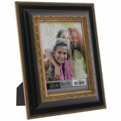 Fill your home with photos of cherished memories, friends, family, and more! Black & Gold Beaded Scroll Frame boasts a plastic construction with a glossy black scoop, ornate gold beading around the outside and a scroll design around the photo opening, and an MDF photo back. Plus, its clear glass screen will display and protect your chosen photo. Set it out on a shelf or a mantel for a fantastic way to fill your space with sentiment!