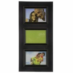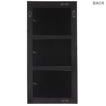 Share your favorite memories, scenic views, loved ones, and pets in this Black Wood Collage Wall Frame. This MDF black frame features scooped fillets around each photo opening with a touch of white distressing. Hang this simple and beautiful frame in your office, bedroom, guest room, living room, den, and more!