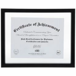 Display your choice of diploma, certificate, or other document in modern style using Black Wood Float Document Frame! This float frame boasts a glossy black MDF outline and a clear glass that can squeeze to contain your chosen document. Hang it up and show it off in your home or office!