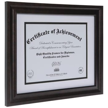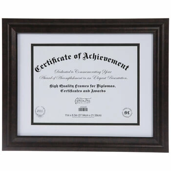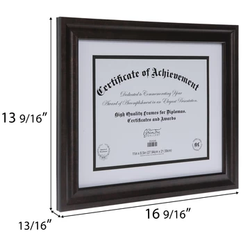 Showcase your achievements in sleek ways using Brushed Bronze Beveled Document Frame. This MDF frame offers a brushed bronze coloration over a beveled frame, a white and black mat, a clear glass panel, and an opening large enough to display your diploma. Post it in your office or home to let everyone see your prized possessions!