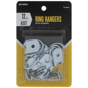 Simplify your display with these D-Ring Hangers With Screws. This assortment of ring hangers includes three different sizes. Each D-ring swivels on its plate, and the plate has a hole for one of the included screws. Install them onto the backs of wall decor for an easy way to decorate!