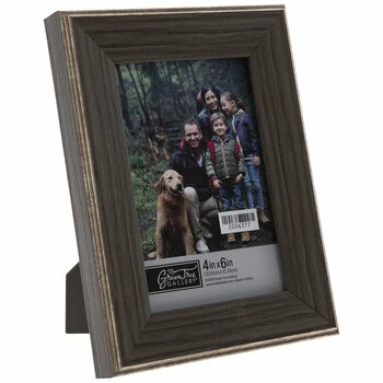 Fill your home with photos of cherished memories, friends, family, and more! Distressed Fillet Wood Look Frame boasts a plastic frame with angled, dark brown wood look sides, a distressed metallic fillet around the outer edge, and an MDF photo back. Plus, its clear glass screen will display and protect your chosen photo. Set it out on a shelf or a mantel for a fantastic way to fill your space with sentiment!