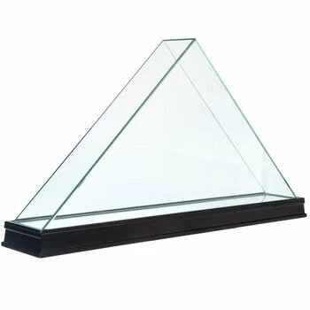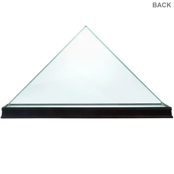 Display a beautiful and meaningful flag in Glass Mirrored Veteran Flag Case. Perfect for providing an exquisite presentation, this MDF base is a dark walnut color holding a mirror that looks up into the glass case protector, which is in the shape of a triangle. Place your flag inside to preserve it and admire it with the clear glass display provided.