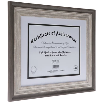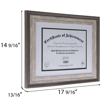Commemorate your certificate, award, or diploma with an elegant presentation using Gray Beveled Document Frame! This plastic frame boasts a two-toned gray beveled front, a clear glass screen, a layered white mat with a black fillet, and an MDF photo back. Fill out your room or office with a professional addition!