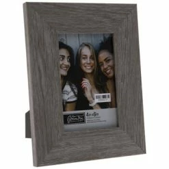 Fill your home with photos of cherished memories, friends, family, and more! Gray Wood Look Frame boasts a plastic construction with a flat surface, a gray wood grain appearance, and an MDF photo back. Plus, its clear glass screen will display and protect your chosen photo. Set it out on a shelf or a mantel for a fantastic way to fill your space with sentiment!