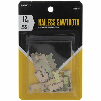 Displaying decor on the walls in your home doesn’t have to be a complicated job! Using these Nailess Sawtooth Hangers, you’ll have a beautifully decorated space in no time. These nail-free sawtooth hangers come in two sizes and a burnished gold color, and each hanger has a barb on both sides to help it attach to whatever you like. Push them into the backs of frames for a simple way to show off art!