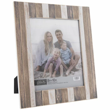 Fill your home with photos of cherished memories, friends, family, and more! Plank Striped Wood Wall Frame boasts an MDF construction with a pattern of brown and whitewashed planks, a flat surface, and an MDF photo back. Plus, its clear glass screen will display and protect your chosen photo. Set it out on a shelf or hang it up for a fantastic way to fill your space with sentiment!