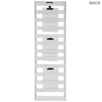 Fill your walls with a wonderful selection of personal photos with White Wood Pallet Clip Collage Frame. This lovely wood piece features a rich white finish and a wood pallet look. This wall frame includes three metal clips to hang your photographs on. Hang it on the wall of your home or office, and let the memories fill your heart with nostalgia and delight!